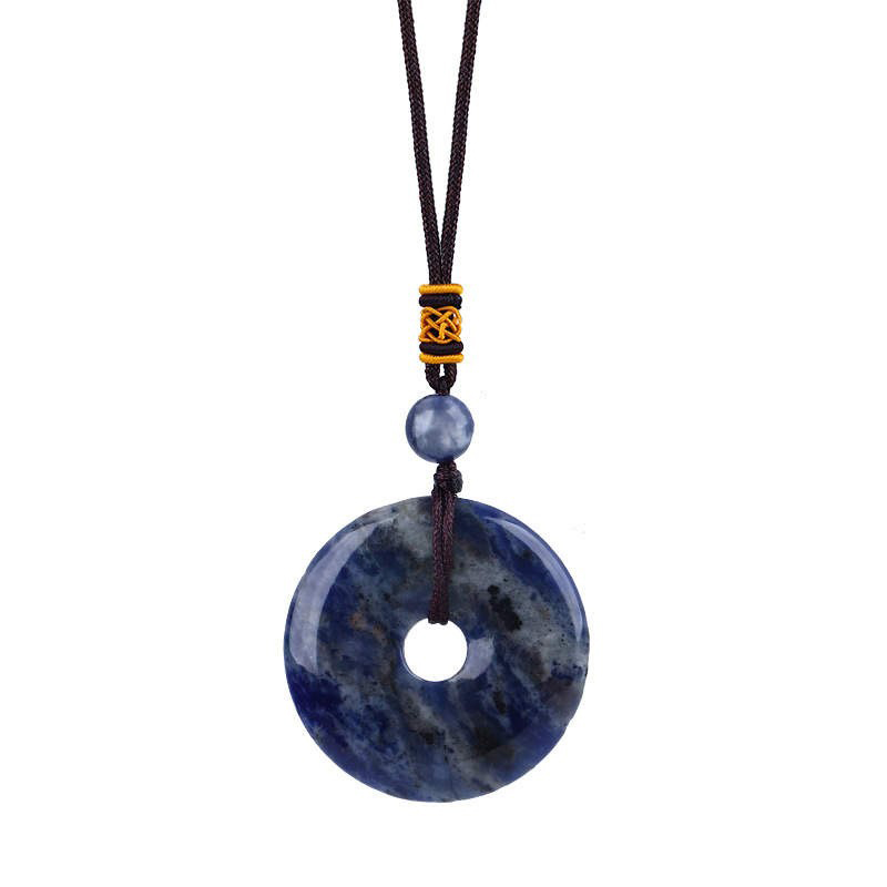 Collana Kenshò “Forza della Natura”, realizzata con pietra Agata Blu Striata e cordoncino marrone. Taglia 40 cm – 50 cm.